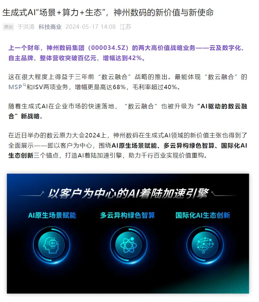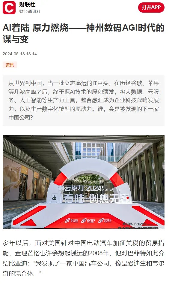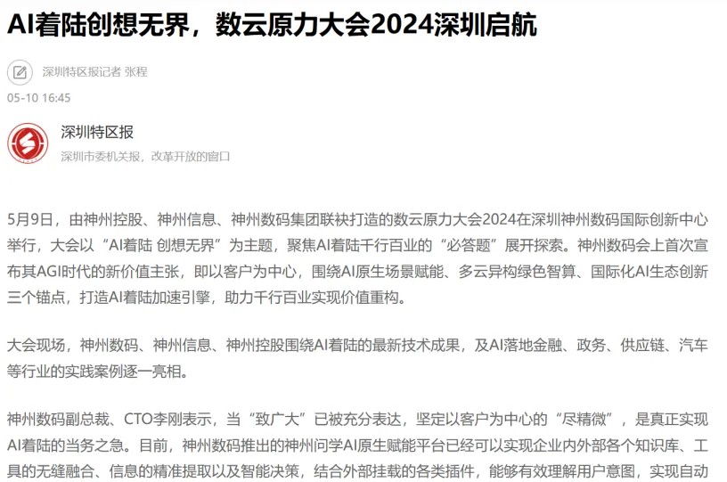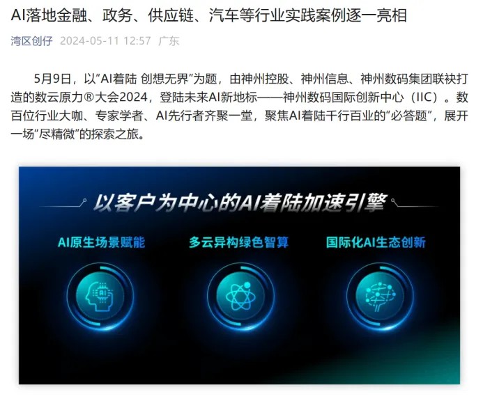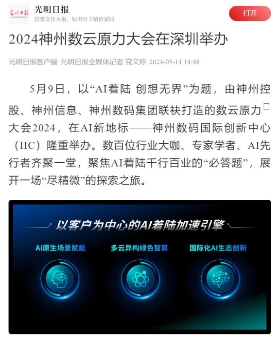 近日,由神州控股、神州信息、米兰电竞集团联袂打造的年度盛会——数云原力大会2024开幕式,在未来AI新地标——米兰电竞国际创新中心(IIC)圆满落幕。这场以“AI着陆 创想无界”为主题的活动,不仅引起了业界的广泛关注和讨论,也引发了媒体的争相报道。